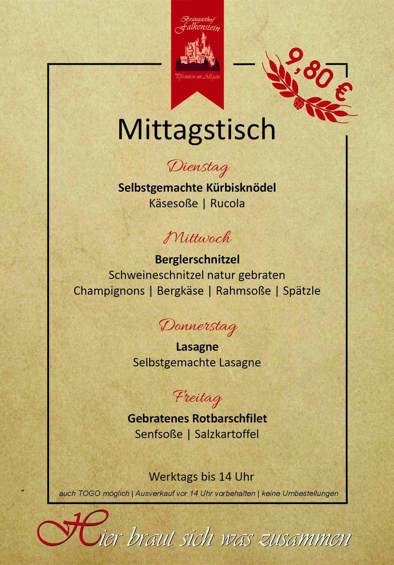 Hier findet Ihr das Mittagsmenü und alle weiteren Neuigkeiten.